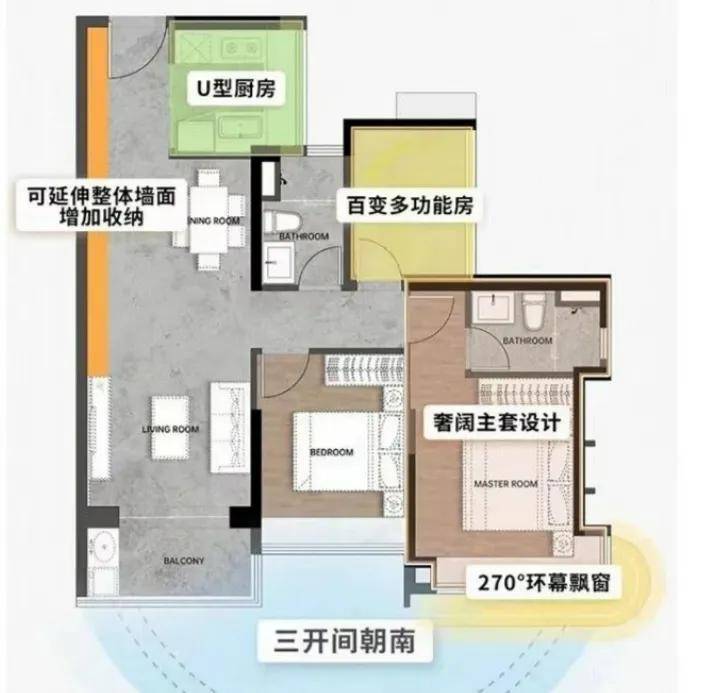 整体价值:7.6m³整墙收纳+南向户型+5㎡全景厨房+270°景观主卧套间