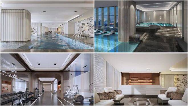 :内部约 3800 方园林由日本设计师小林政彦操刀,融入日式凉亭、流水瀑布、屋顶花园等元素。采用豪宅酒店式公区设计,大面积玻璃幕墙搭配银色新型铝板材质,约 8 米挑空酒店风大堂搭配奢石。整栋楼 5 部电梯,低区 2 部,高区 3 部,电梯双开门,达到酒店级配置。