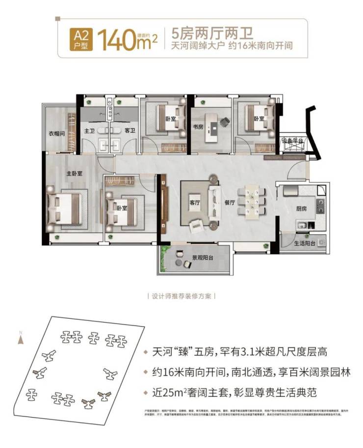 建面约140㎡臻五房,约16米南向大开间搭配南北双阳台,采光通风极佳。今年买,今年住,美好生活随即兑现。
