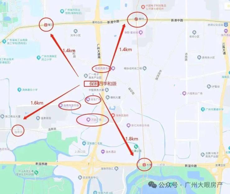 周边还有多个公园和绿地,如赤岗公园、江南西公园、海心沙等等,都是兼顾优美环境和休闲空间的好去处。