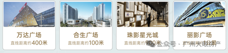 周边配套成熟,比如万达广场、合生广场就在周边,日常吃喝玩乐不用愁。