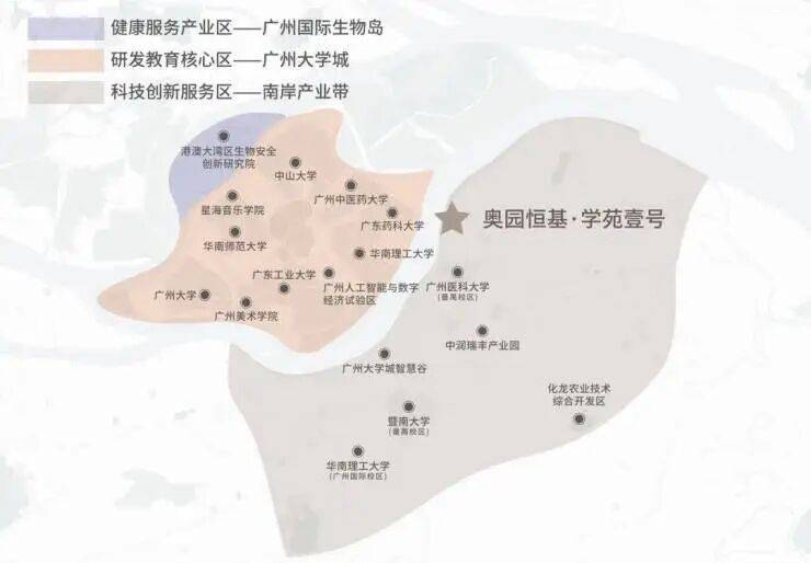 中山大学、华南理工大学等13所全国知名高校为邻,与生物岛、国际科技创新城、思科智慧城构成大湾区智库。