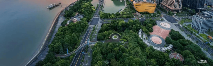 现代和自然的完美融合,在星河江堤春晓前面完美呈现。