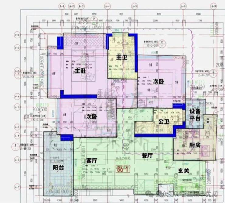 ▸ 86改善3房(29套):86㎡的3房2厅2卫,设计的是经典竖厅格局,进门入户玄关,客厅3.4米开间,LDKB一体化,S墙设计预留冰箱卡槽位,动静分区,三开间朝南,3个卧室分别做到了主卧13.52㎡/次卧9.34㎡/次卧8.11㎡(去掉墙体,包含飘窗),U型厨房,公卫三段式分离,还带1个设备平台,西南朝向。