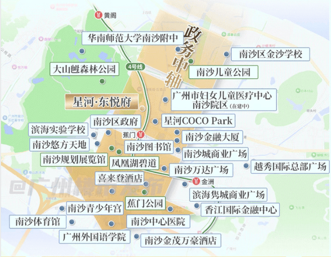 南沙区政府、三馆一宫、南沙中心医院、南沙外国语学、蕉门地铁站等,半数以上的高端市政和配套资源都汇聚于此。