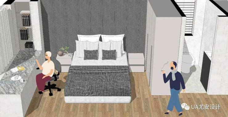 主卧套房小家化设计,它可根据需要变成——工作室、游戏室、化妆间,让其也能成为“自我实现”的小天地。