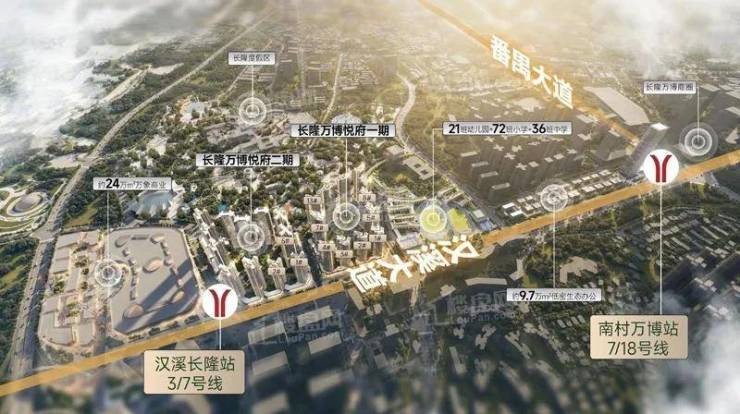 - 靠近万博CBD,配建54班小学+36班初中(番禺广附),2025年开学。