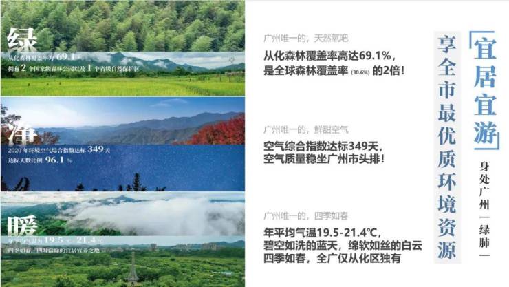 从化区的整体绿化率高达68.5%,PM2.5浓度远低于广州平均水平。