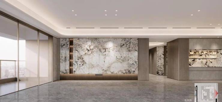 另外,项目还以陶瓷薄板概念,定制最适合一线江岸的岩板及全屋护墙板,不仅视觉上更加美观大气,而且避免了缝隙藏污纳垢的可能,兼顾美学表现与长期耐用的居住需求。