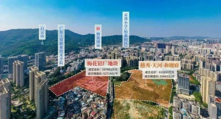 西派天河序这块地,就是之前的梅花铝厂地块,紧挨着越秀天河和樾府。