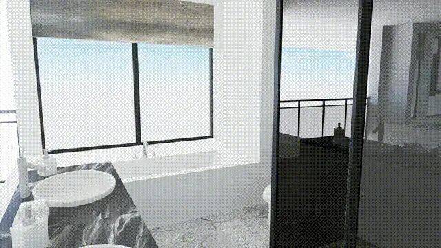 两个套间朝南,面宽和层高同时被“撑大”,即使是卫生间也能显得很透亮。