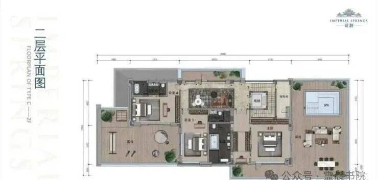 温泉别墅融合东方建筑精髓与西方设计理念,所有空间都无限接近自然,无墙化绿洲式景观设计,每户带8-10个庭院,长达 15-30米的面宽,一经推出便赢得了“史上最美庄园别墅”的美誉。