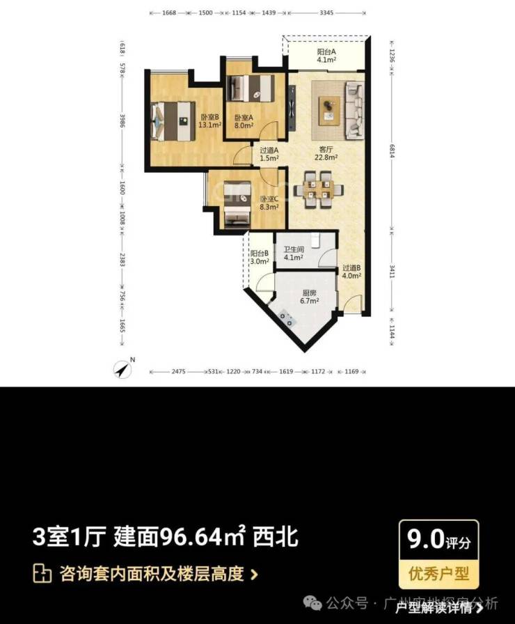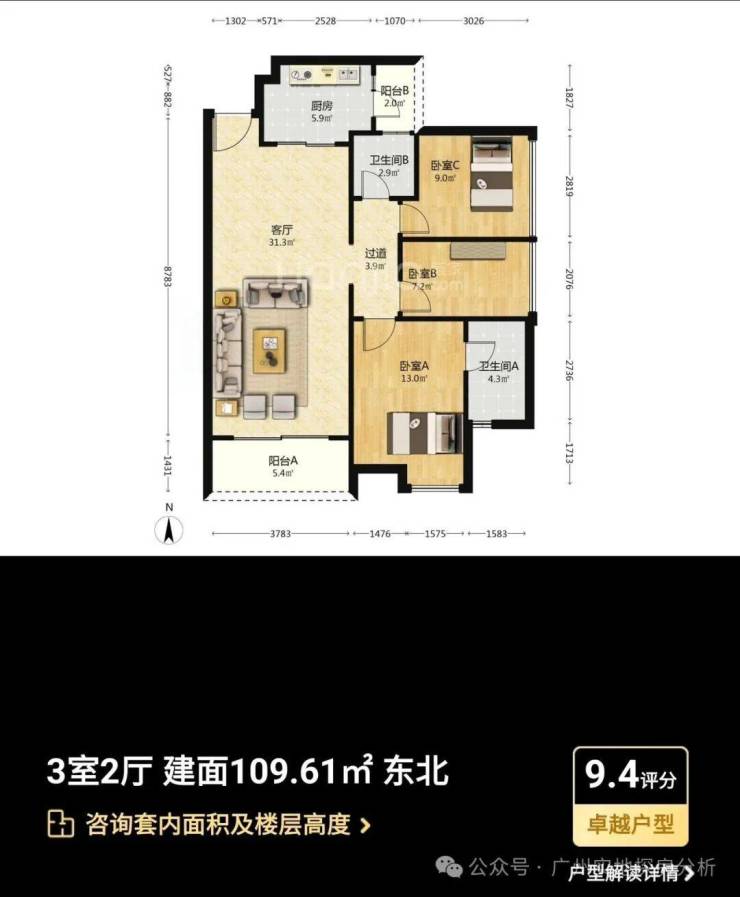 主力户型:主打95-133㎡三至四房,涵盖南北通透、全明采光的户型设计,如109㎡三房采用经典竖厅设计,133㎡四房配备6.8米景观阳台,实际使用率达90%。