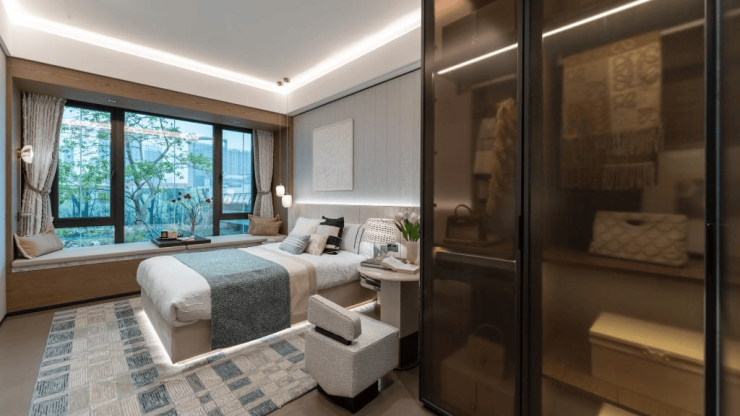 2栋能被称为“楼王”,就正因其正对着滨水景观,直观上涌果树公园,IMAX巨幕视野,直接将大片的绿意揽入室内。