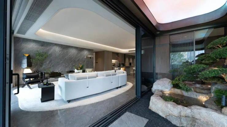 超广角阳台,将别墅才有的庭院平层化,直接在云端花园内种树造景。