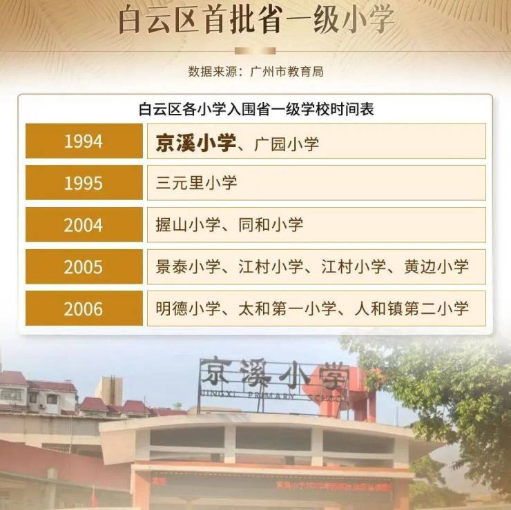 当下对口的,是白云区首批省一级学校——京溪小学(信息来源:广州市白云区2025年招生政策,具体入学信息以当年教育局公布为准)。