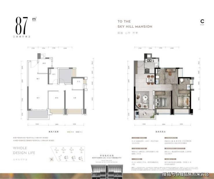 85㎡三房一卫,87㎡ 三房两卫,108㎡四房两卫