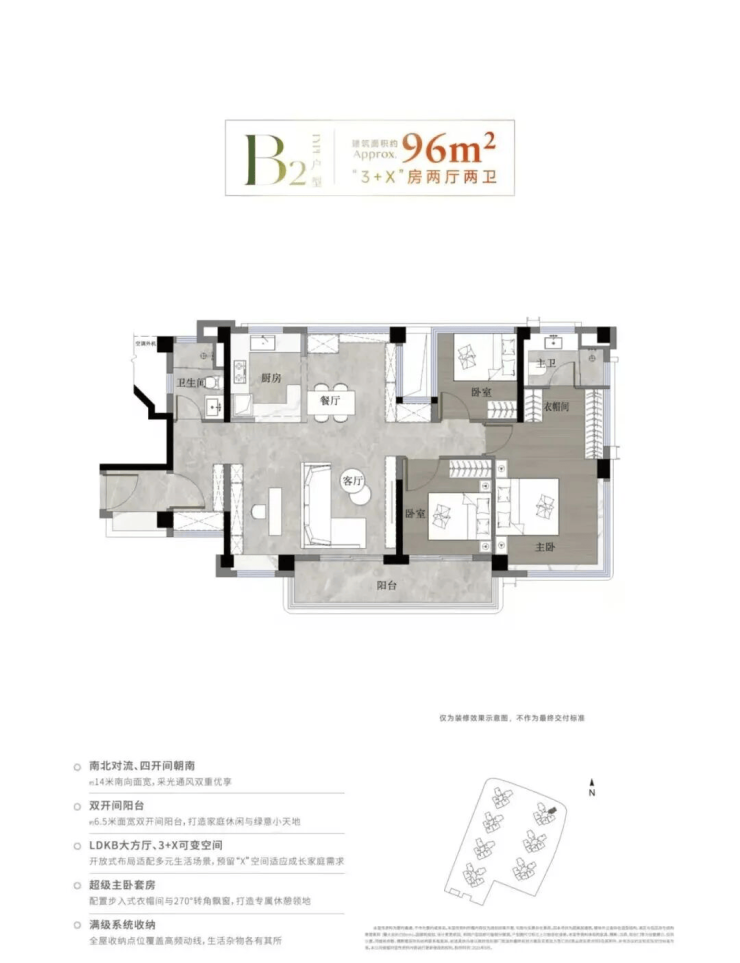 •96㎡:3+1房2厅2卫