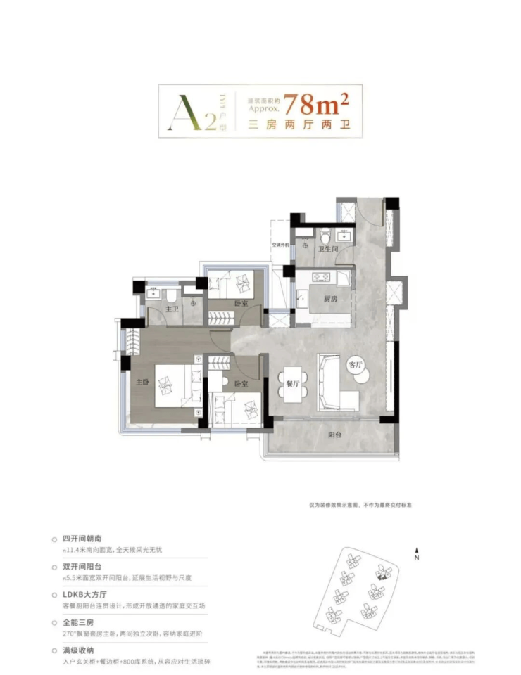 •78㎡:3房2厅2卫
