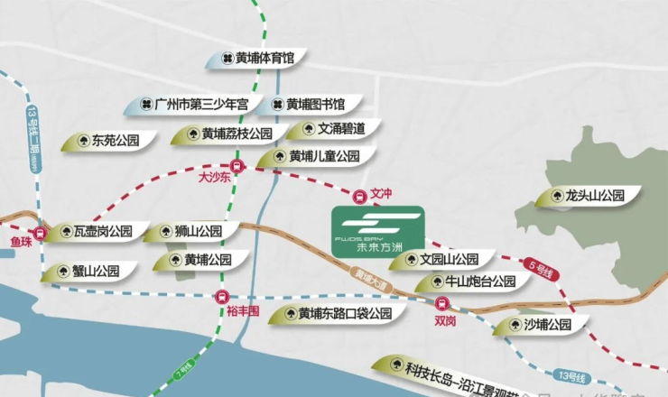 城际交通:广深沿江高速,迅达东莞、深圳;黄埔高铁站(规划中)9站21线,联通大湾区,便捷出行