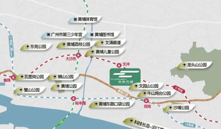周边8大公园:3公里休闲步行,文园山公园、牛山炮台公园、龙头山森林公园,以及黄埔儿童公园、黄埔荔枝公园、文冲碧道、黄埔公园、沙浦公园,罕见城市中心绿洲环绕