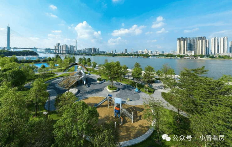 项目约18万㎡的广船滨江公园,配套儿童公园、大草坪、羽毛球场、篮球场等,下楼即可享受运动,野营,跑步等娱乐休闲方式,东西延续到广钢原址公园,构成超60万㎡的T型城市绿轴。