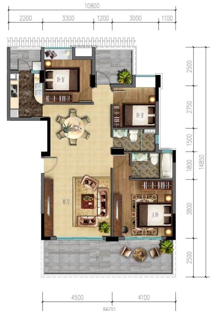 二期小高层:约100-108㎡ 3房2厅2卫 (二期新品/全新面世)
