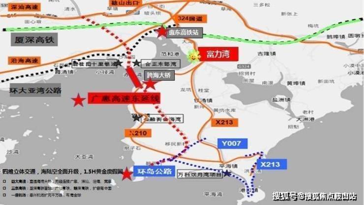 项目位于广东三大滨海旅游景区(巽寮湾、双月湾、亚婆角)的中心地带,1小时覆盖深圳东滨海旅游度假项目。拥有发达便捷的交通体系,1小时达深圳,2小时覆盖珠三角生活圈,是距离深圳、广州、东莞等珠三角核心城市最近的、配套与景观资源最丰富的滨海度假项目。