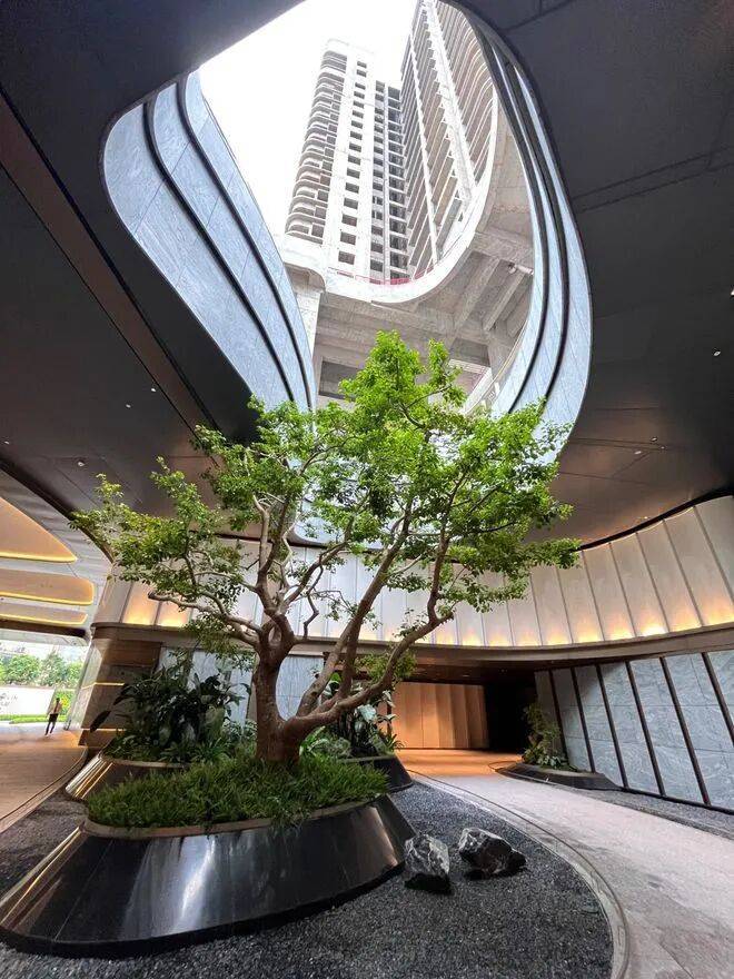 建筑外立面采用独特的设计理念,线条流畅且富有现代感,整体造型犹如钻石切割般璀璨夺目,在城市中彰显出独特的标识性 。同时,这种设计不仅美观,还能最大化地利用采光和通风,为业主营造舒适的居住环境。
