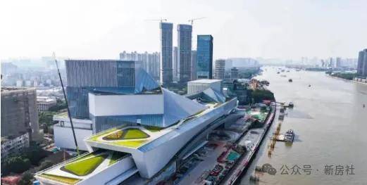 约800米极宽江面,更可瞰约2公里滨江绿地公园带和CBD繁华天际线,以珠江之光,点亮一座城市的千年荣光,广东省重点文化工程“三馆合一”项目全面封顶,目标打造成为“广东艺术的新客厅”。