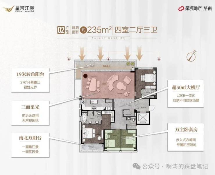 千亿星河联袂三位国际大师,择址白鹅潭 CBD 三江头排,匠筑约 179-235㎡一线瞰江奢宅,仅 324 席,敬献望族大家。