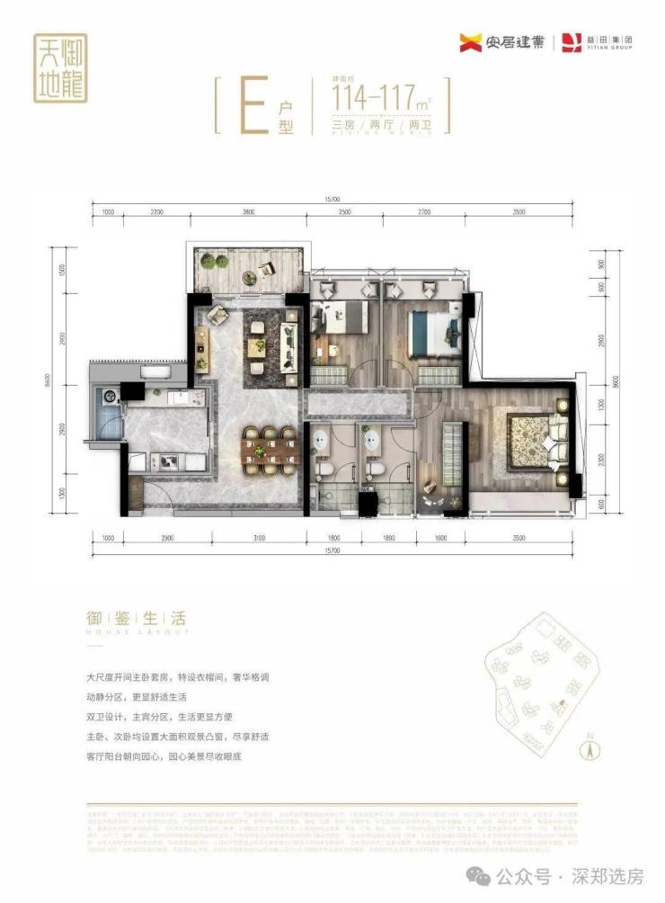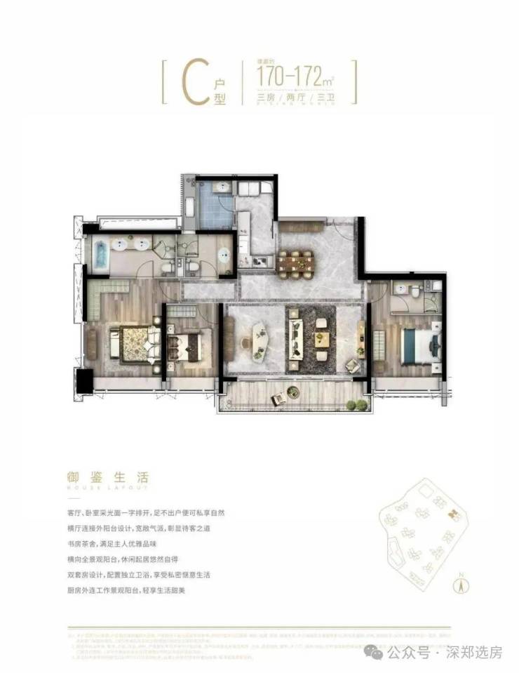 臻稀阔邸,抢藏从速:建面约103-200㎡3-4房宽境美宅,罗湖屈指可数的纯粹绝版大户型高端住区,全景观超大阳台,将山景、水景、园景尽收眼底;双主卧套房配置,纵享私密奢华空间。