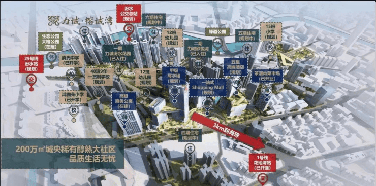 尽管身处主城腹地,力诚榕诚湾并未牺牲生活的便利性。项目自身规划约60万平方米的商业综合体(含社区商业及中芯商务区),未来将引入多元业态,打造区域级消费中心。周边已有沃尔玛、茶滘市场等成熟配套,步行可达;而万科朗庭商业、太古里商业街区、华润万象城等高端商业体也正在加速兑现,未来将形成多层级、一站式的商业服务体系。