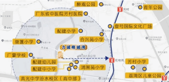 虽然项目距离地铁1号线花地湾站约1.8公里,但周边路网发达,自驾出行十分便捷。茶滘路、花蕾路、芳村大道等主干道环绕,可快速通往老荔湾、越秀、海珠西等传统城区。同时,楼下即设茶滘公交总站,106路公交3站直达芳村地铁站,对在越秀等地工作的上班族十分友好。