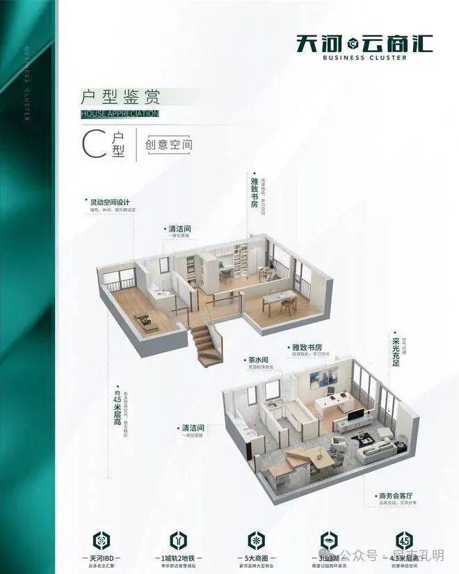 天河云商汇建面约30-58㎡创意空间,一城轨+双地铁+四横四纵组成的交通路网,出行速度超乎你的想象。