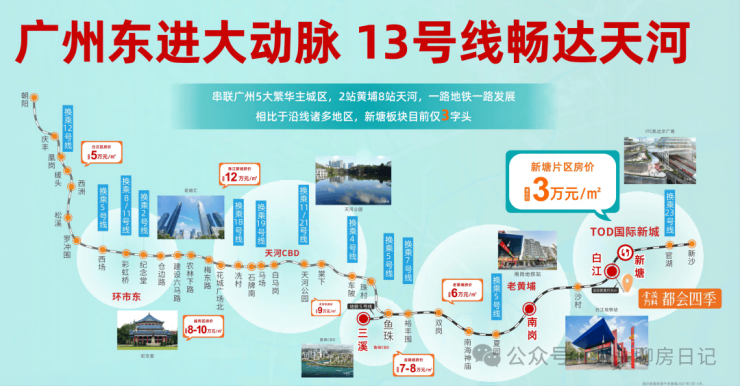 再有这个13号线二期也在修,工程进度去到82%,预计快的话24年年底有机会通车,串联更核心的一些区域板块,像金融城、天河公园、珠江新城、越秀、荔湾、终点到白云朝阳