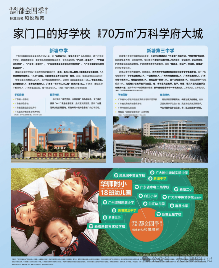 下楼即是18班幼儿园、华师附小(华南师范大学附属新塘实验小学(暂定名)),接送孩子更方便;