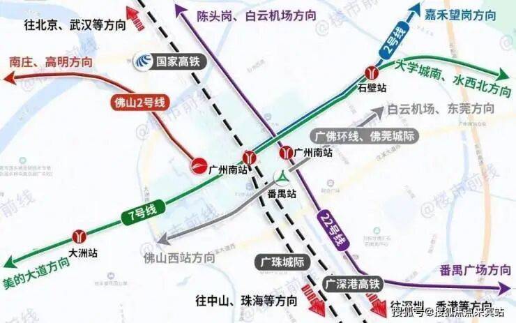 5 高铁+3 城轨无缝连接大湾区及国内9省,高铁可实现8小时辐射全国,3小时华南商圈,48 分钟直通香港九龙;城轨可实现 1 小时辐射大珠三角,半小时广佛同城,58 分钟直通澳门;广州南站4地铁交汇+4快速,15分钟直达南村万博CBD,30分钟直达珠江新城CBD。