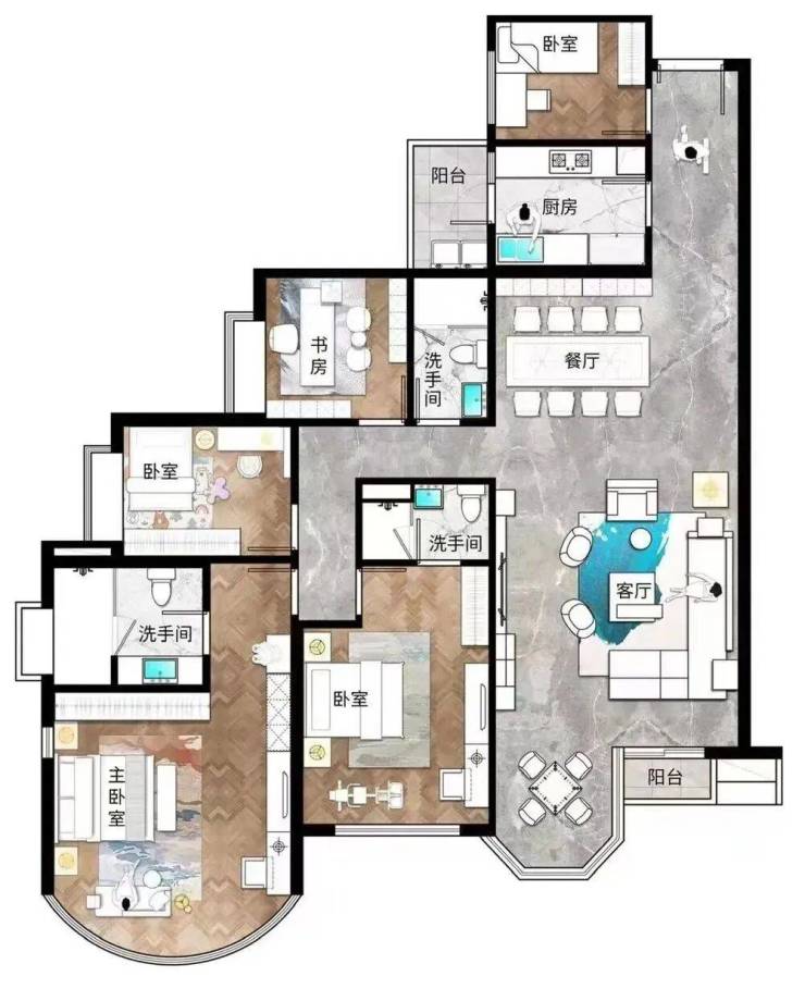 在售面积:189㎡(四房两厅三卫,四房两厅两卫主套带衣帽间)