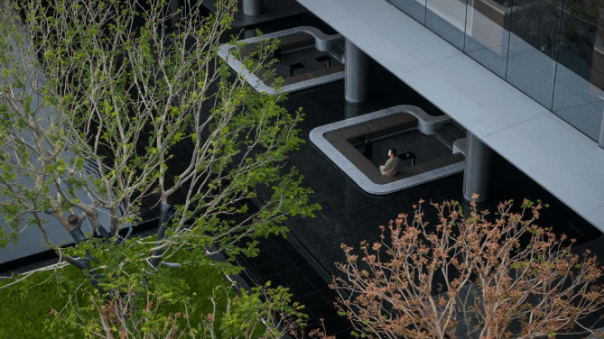 架空层结合景观及屋顶花园等,塑造R-Dream梦想聚场,分别设置城市会客厅、童趣梦岛主题乐园、知行书社、自然课堂、棋牌室、休闲座椅区、儿童游乐区、健身区等。充满温度的空间中,孩子在专属游乐区快乐成长;大人在交流中收获共鸣;老人在休闲中安享时光;各有所乐。