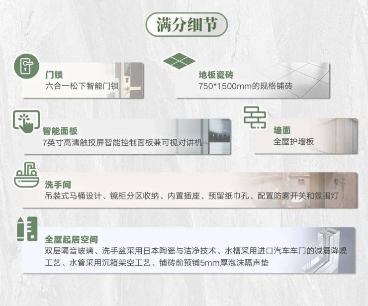 新世界·天馥属于二星级绿色建筑,特别注重健康社区的打造,推出的5大智慧健康系统,覆盖“空气——用水——光照”等多维度,提供健康与舒适的生活体验。