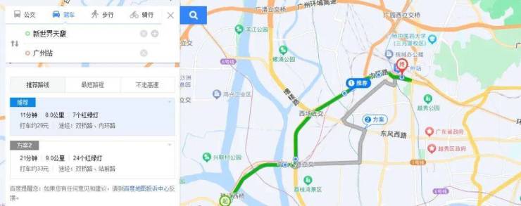 自驾去省人民/中山大学附属医院:走芳村大道转双桥路,再接内环到东风路,全程10.9公里,不堵车耗时17分钟左右;