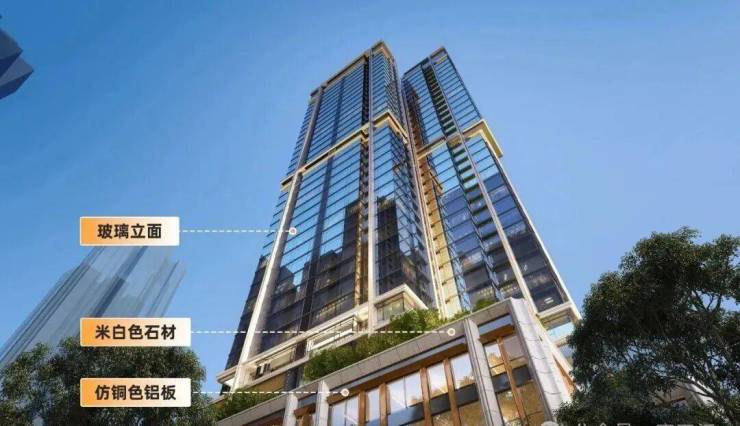项目外立面则是采用全玻璃幕墙设计,配合航空级仿铜色铝板、米白色石材,打造高端外立面,以超百米地标,融入珠江新城CBD天际线。