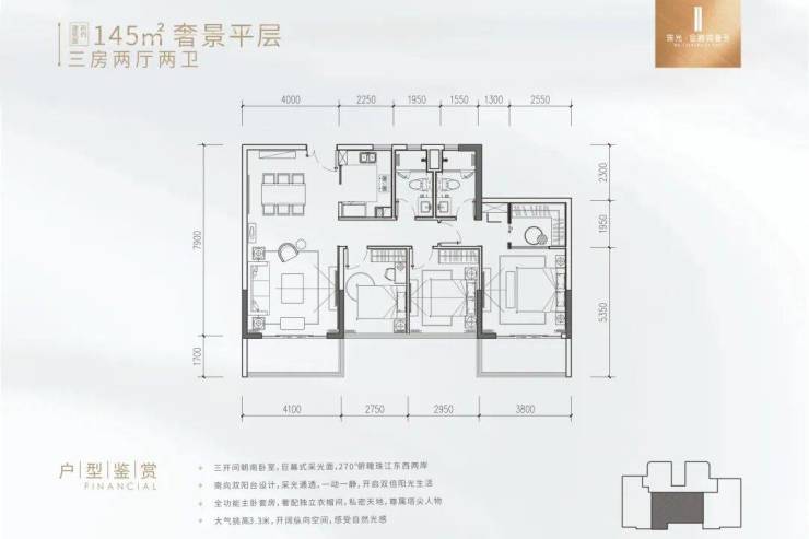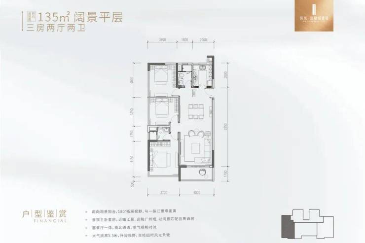 罕见的一字型楼宇,南北通透布局,户型可一揽无垠江景。阳光与清风穿堂入室,部分户型更拥有朝南双阳台,大手笔规划约14米超大朝南望江面宽,极致视野。系统门窗配合L型270°转角视野,每一步都遇鉴生活的别样风景。