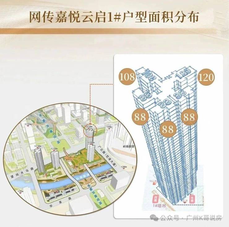 首先云门对面050地块,两栋楼南北分布,1号楼136米,39层高塔楼设计,3T5户的设计,分别是3户87平,两户106平。
