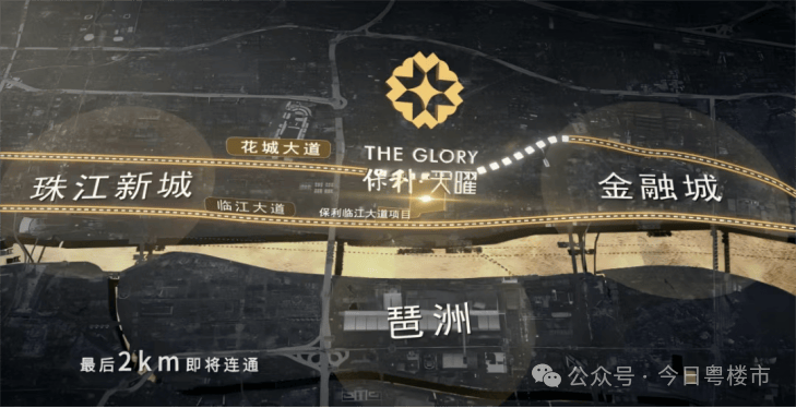 全维路网—临江大道、花城大道、过江隧道连接珠金琶;便捷地铁—员村站上盖,5号线三站珠江新城站,11号线1站即达琶洲;