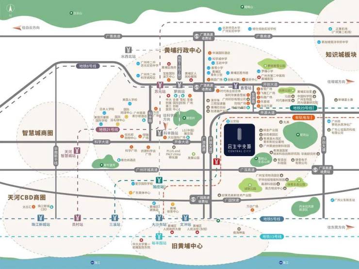 周边更有国际体育演艺中心、黄埔区图书馆(香雪馆)、黄埔区少年宫(萝岗宫)三大文化地标,感受独特的人文魅力。