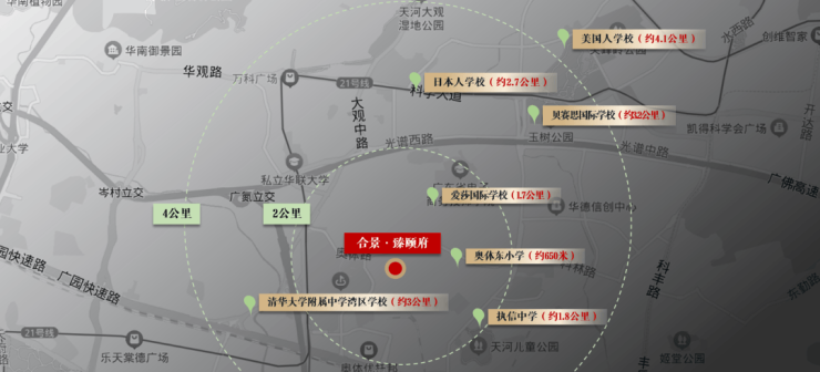 国内顶级学府:奥体东小学,执信中学、清华大学附属中学湾区学校环绕