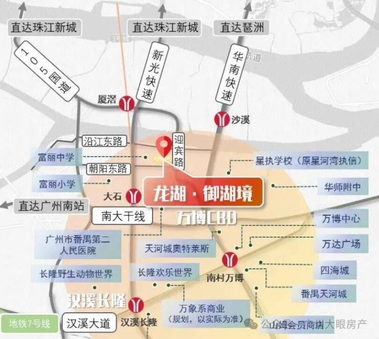 往南上番禺大道,只需要10分钟左右就可以到达番禺万博。