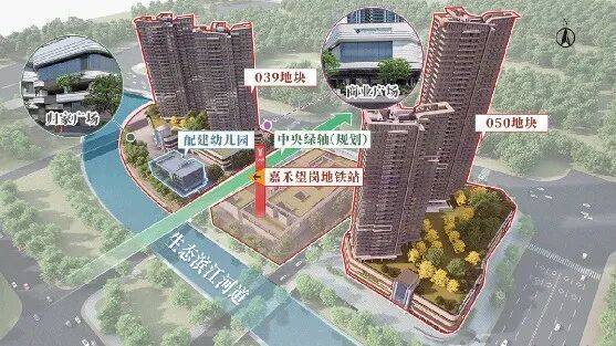 项目总共4栋楼,两个地块各两栋,其中有超高层的住宅,且做了抬高设计。050地块,两栋楼南北分布,1号楼136米,39层高塔楼设计,3T5户的设计,分别是3户87平,两户108平,2号楼,27层高也是塔楼设计,3户88平,一户西南向108平,一户东南向120平。039地块靠近幼儿园,两栋楼呈东西分布,靠近地块口的3号楼栋,2T5户,28层高,同样三户88平,一户西南向108平,一户东南向120平。4号楼比较靠近民房,2T5户,28层高,户型跟3号楼一样。